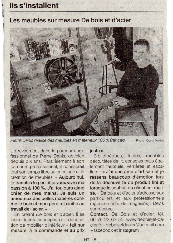 Contactez-moi et je me ferais un plaisir d’échanger avec vous sur les possibilités, soit par mail : deboisetdacier@hotmail.com, Facebook ou Instagram. Les moins timides peuvent me joindre au : 0676226355