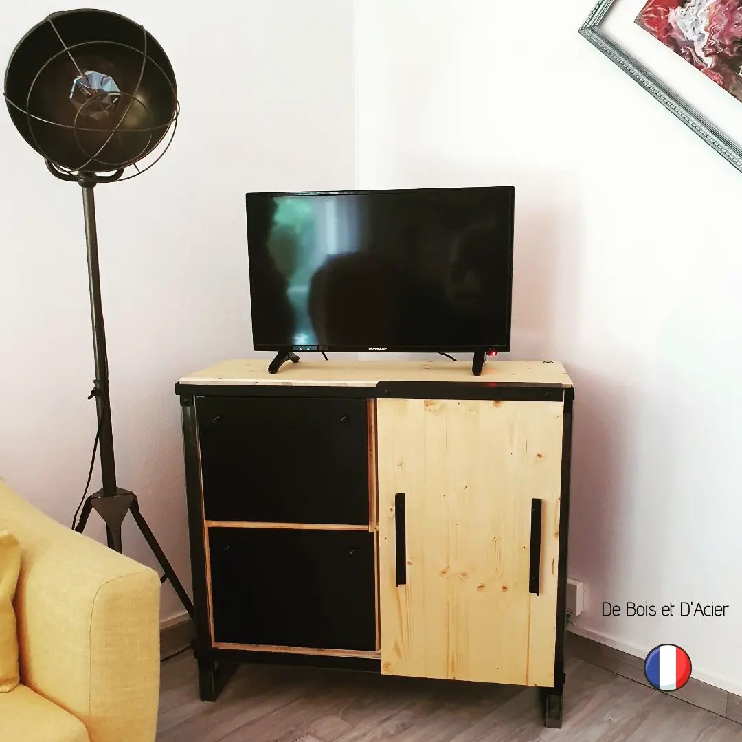Buffet / Meuble TV. Ici un casier a retrouvé une seconde vie.