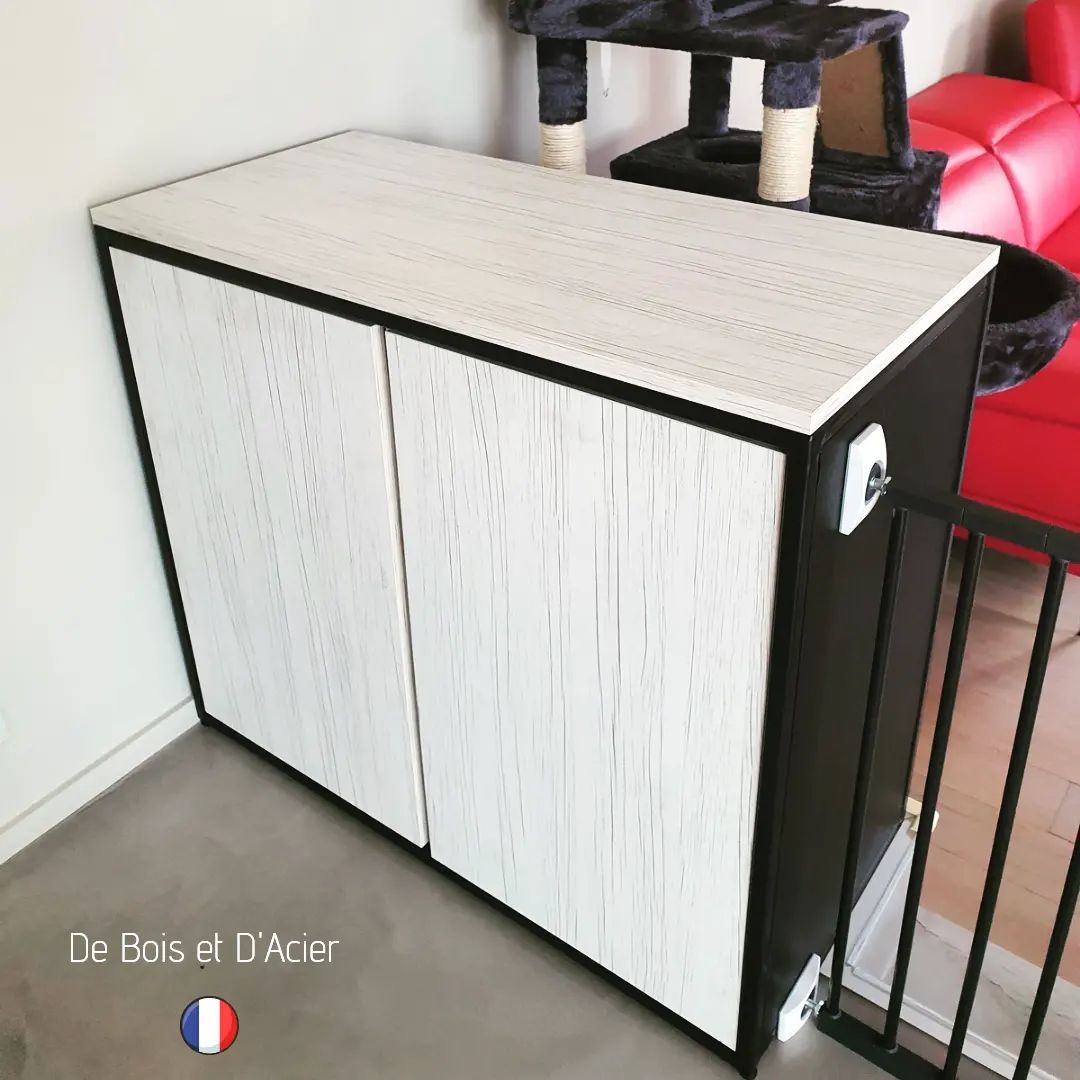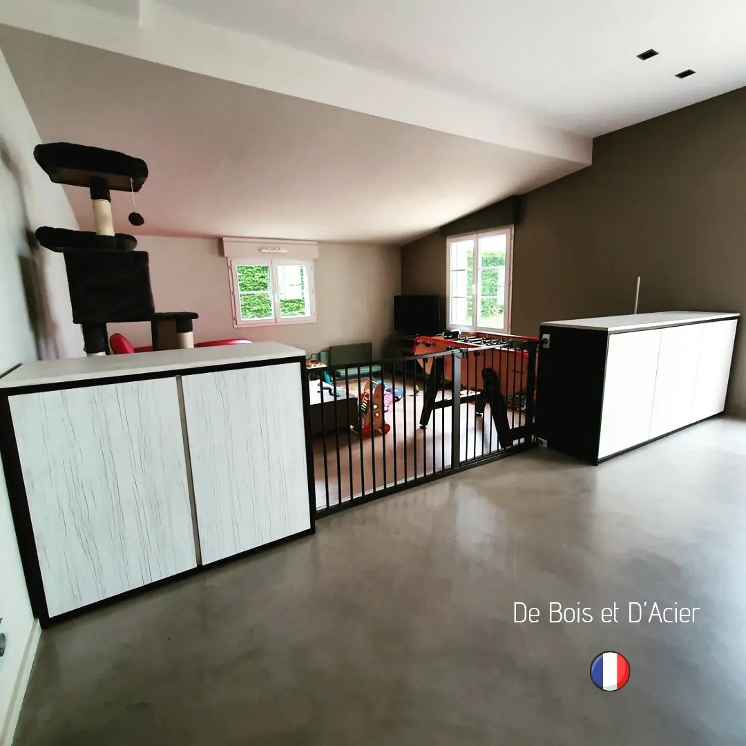 Le but était de pouvoir garantir la sécurité pour la garde d’enfant qu’exerce à domicile ma cliente. Hauteur des buffets aux normes NF et systèmes de grilles amovibles entre les 2 buffets installés.