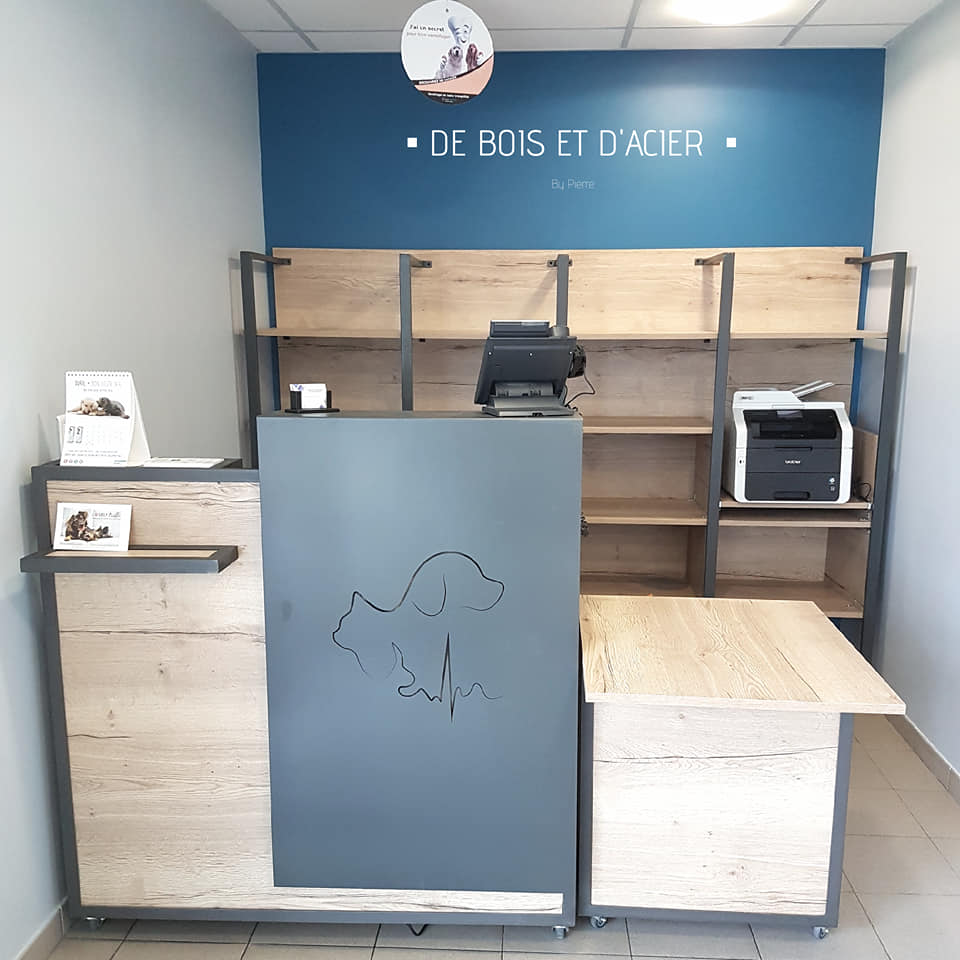De Bois & D’Acier travaille également pour des professionnels, agencement d’accueil, optimisation de l’espace, mobilier sur mesure pour tout corps de métiers, magasins de bricolage, architectes, agriculteurs, chirurgiens, opticiens, vétérinaires etc.