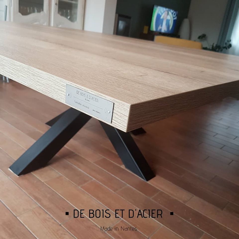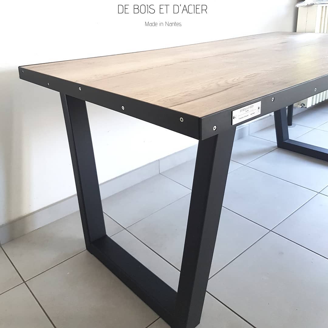 Table 12 personnes structure en acier et plateau sur mesure couleur chêne naturel. Modèle spécial DBDA