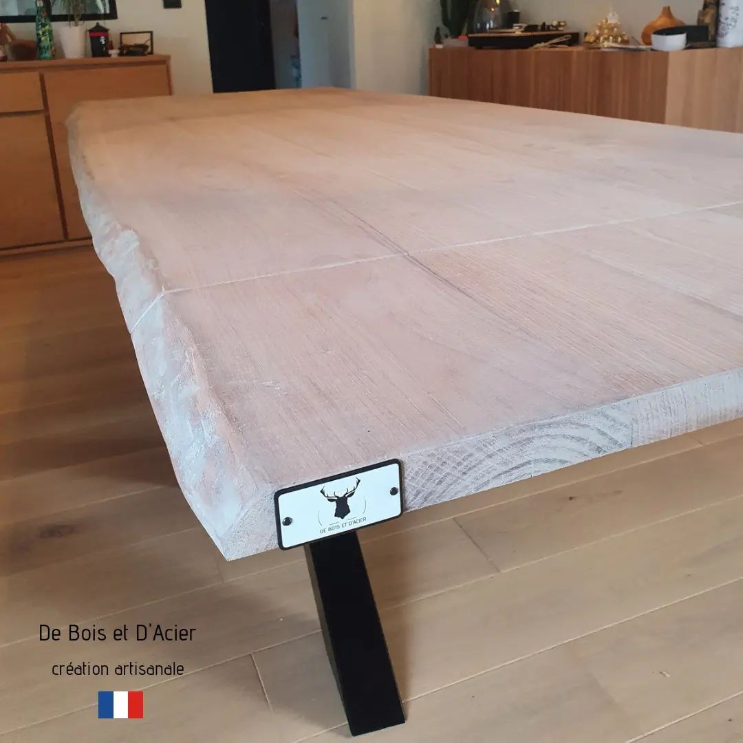 Table 16 personnes, pied déstructuré et plateau couleur chêne naturel