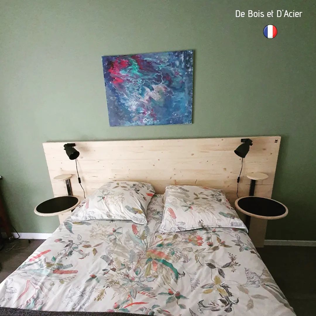 Voici quelques réalisations de têtes de lit avec la possibilité d’insérer des lampes, des prises USB ou électriques et même des interrupteurs.